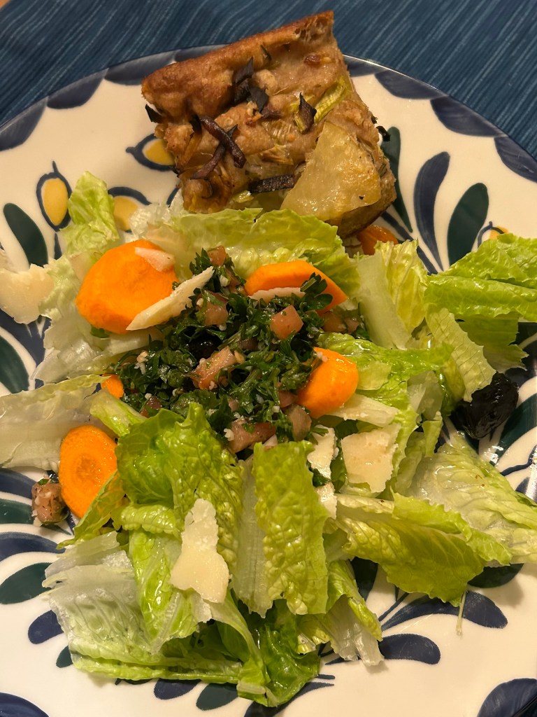 The cooked beans tasted creamy and at the same time were firm and held their shape. We served the soup for dinner with freshly ground pepper and a sprinkle of grated pecorino cheese along with a salad and crispy squares of potato & leek focaccia (recipe to come in another blog!).