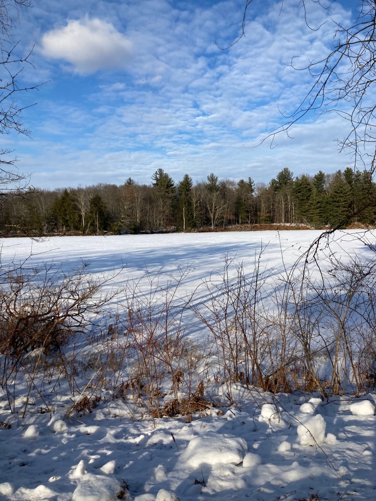 Walks on the last few weeks have been glorious, even with frigid temperatures. The contrast of light and shadows on the snow, water and sky has been breathtaking; some days with brilliant blue skies and others cloudy, misty and atmospheric.
