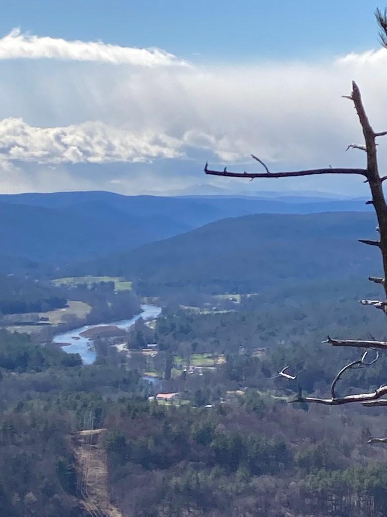 It was a windy chilly early spring day with the unusual occurrence of Easter, Passover and Ramadan taking place over the same weekend. We took a walk with breath taking views on the High Ledge Wildlife Sanctuary Trail in Shelburne, Massachusetts. From the top of the trail one can see the Deerfield River weaving gracefully through the hills with Mt. Greylock in the distance.