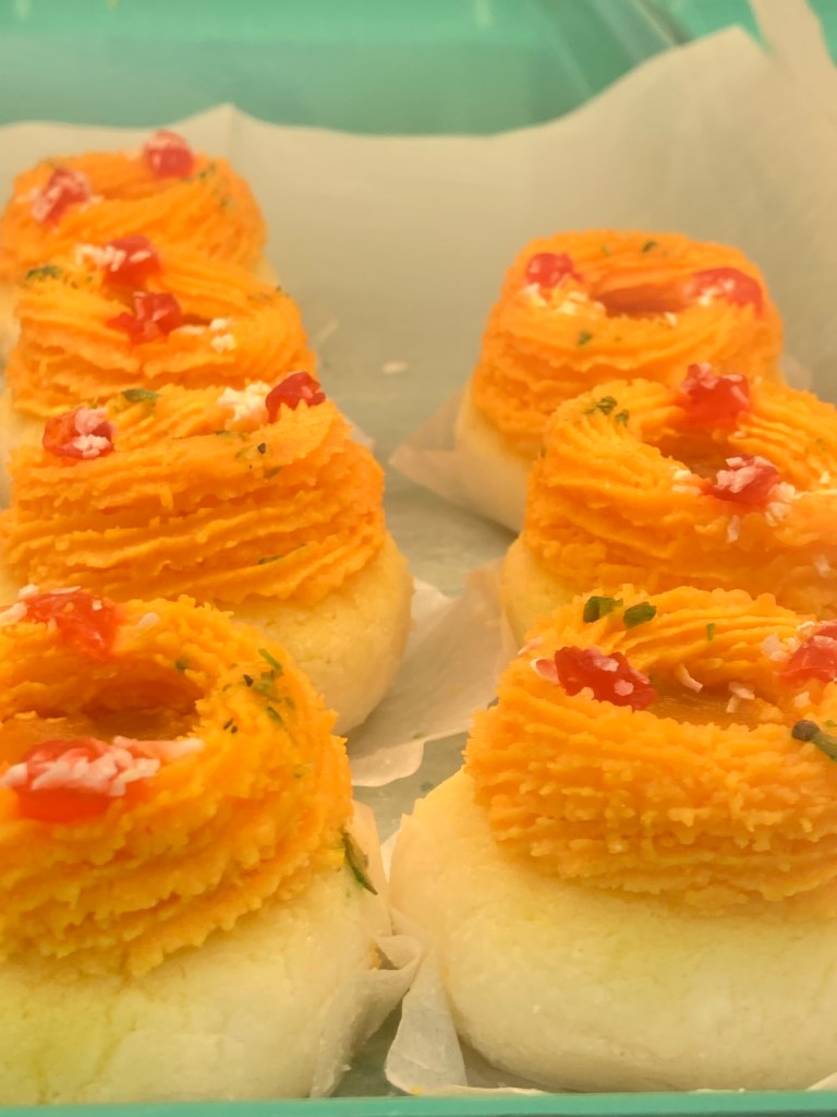 The colorful and fragrant small desserts were like eye candy; I succumbed and selected a few small pastries to sample on the way back home.