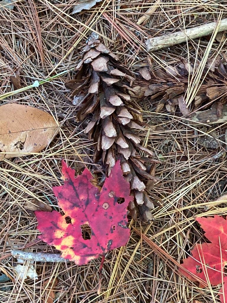 The Fall foliage has been lovely this year; we have traipsed happily through our land in Massachusetts on the winding maze of trails that Paul has cut through the woods. As we walk, our minds quiet.
