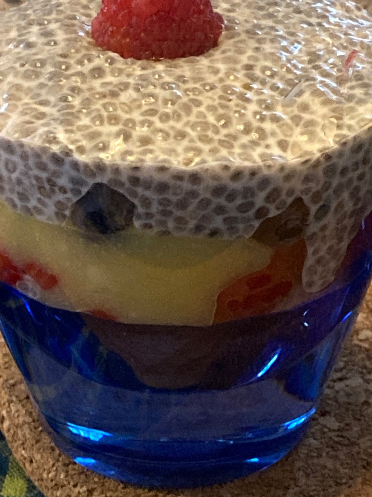 There were a few leftover crepes; the next morning we enjoyed the crepes filled with fresh fruit (whatever you have on hand is good) and plain yogurt. Topped with plenty of crunchy granola and a drizzle of maple syrup, this was an excellent quick breakfast treat!