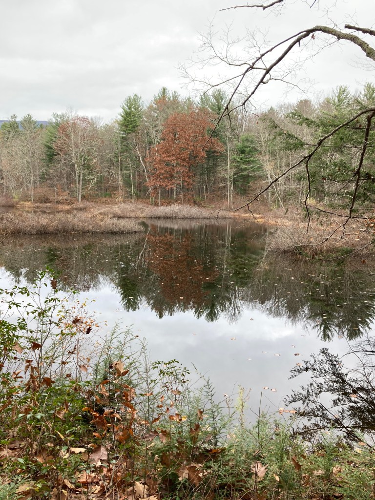 The Fall foliage has been lovely this year; we have traipsed happily through our land in Massachusetts on the winding maze of trails that Paul has cut through the woods. As we walk, our minds quiet.