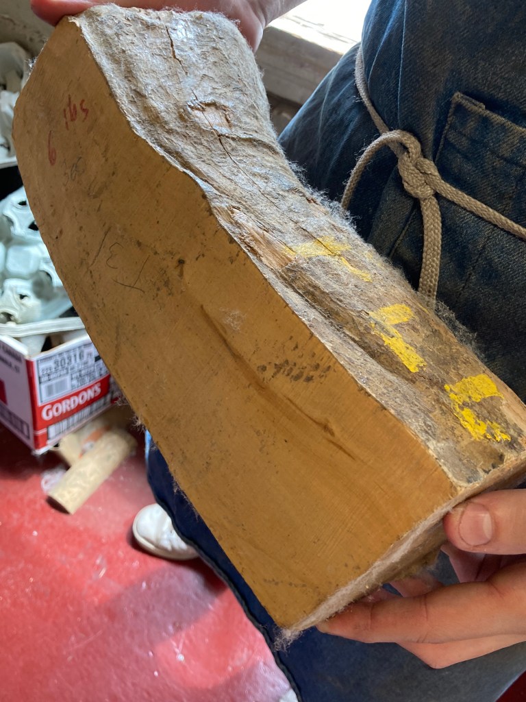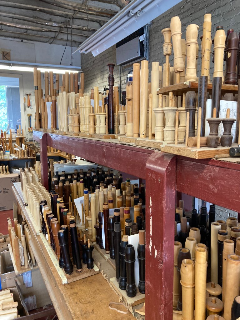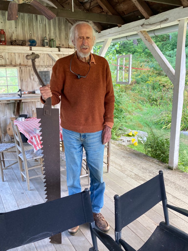 The first part of the house was built around 1790 with an addition added in 1850 in the Greek revival style. His family bought the farm in the 1960’s and was only the 3rd family to live in the house! Next to the house is a small pond and the studio that is now Tim and David’s workshop was an Ice House. Tim showed me a menacing looking antique saw that he found in the old barn that was used to cut ice.