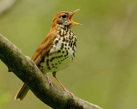 Previous Image Next Image Wood Thrush perched on a limb singing. Wood Thrush perched on a limb singing.